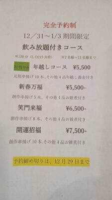 12完全予約制 12/31~1/3期間限定コース